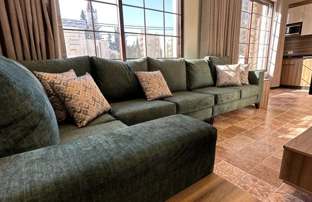 الشقة تقع على بُعد 10 دقائق بالسيارة من قصر رغدان.